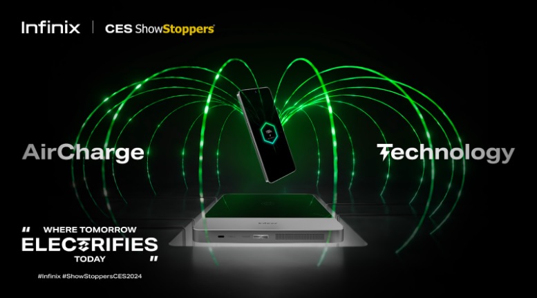 وعرضت Infinix خلال CES 2024 تقنياتها المتطورة، بما في ذلك Infinix AirCharge وبطارية Extreme-Temp ، ويستخدم AirCharge من Infinix رنينًا مغناطيسيًا مبتكرًا متعدد الملفات وخوارزميات تكيفية، مما يسهل الشحن اللاسلكي حتى 20 سم وبزوايا 60 درجة. يضمن السلامة بترددات أقل من 6.78 ميجاهرتز ويوفر طاقة 7.5 واط، فهو يشتمل على دوائر واقية. وتتجاوز هذه الطريقة الشحن التقليدي، مما يسمح للمستخدمين بشحن الأجهزة بسهولة أسفل المكاتب أثناء أنشطة مثل الألعاب أو مشاهدة مقاطع الفيديو.