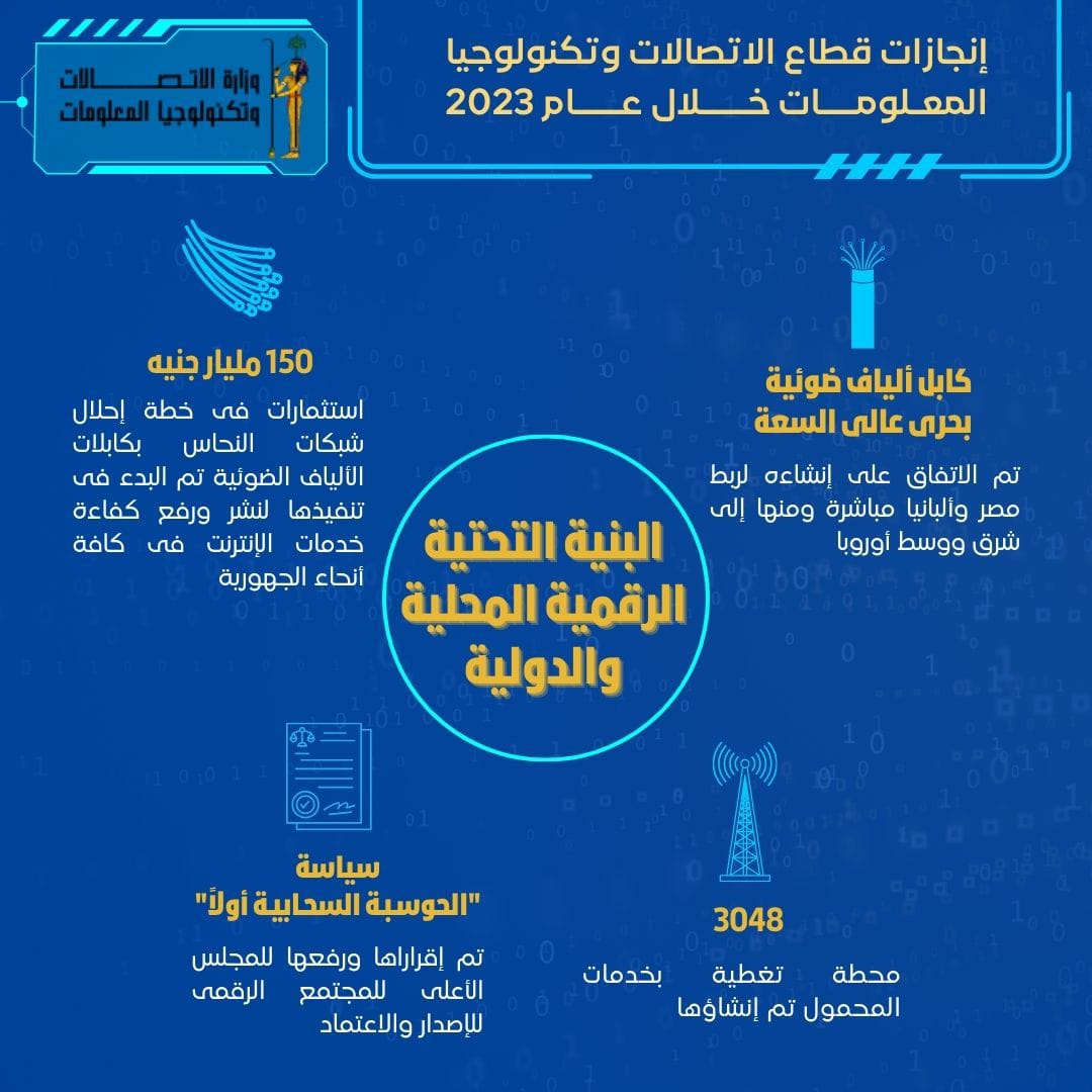 وفيما يلى أبرز ما تم إنجازه فى قطاع الاتصالات وتكنولوجيا المعلومات خلال عام 2023:-