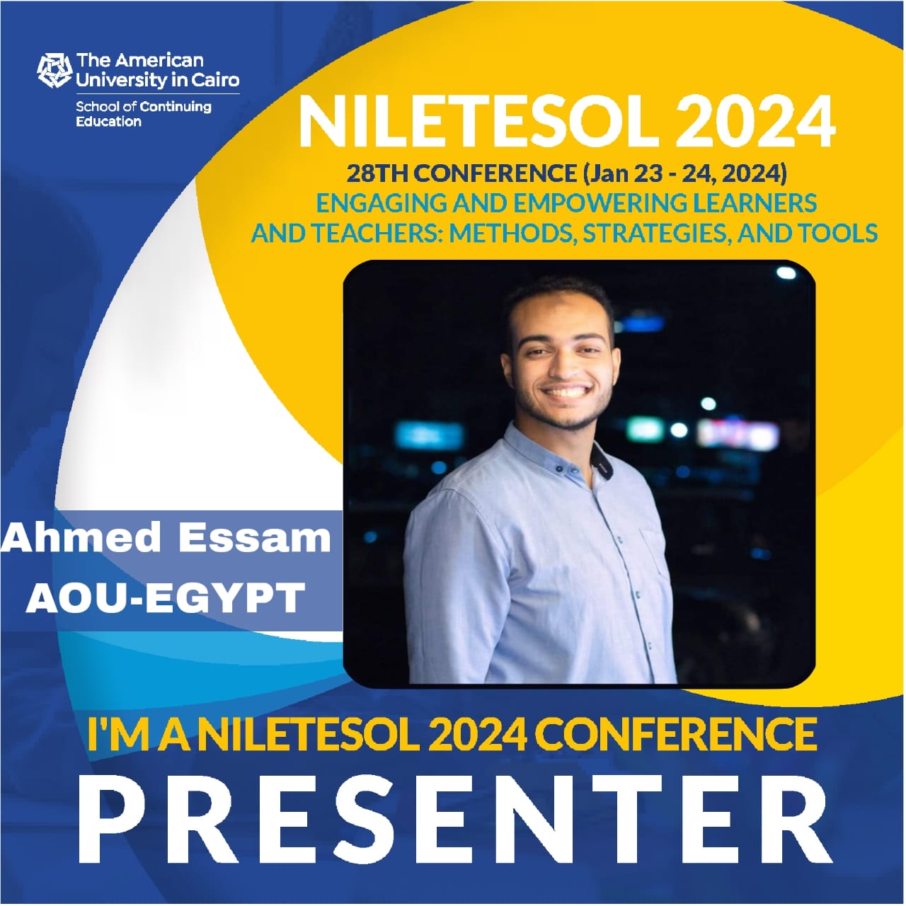 ويشارك كل من الباحثين ، هشام محمد بموضوع عن تقييم الكتاب المدرسي في ضوء مهارات القرن الحادي والعشرين وأحمد عصام بموضوع عن الذكاء الاصطناعي ودوره في تعزيز كفاءة مهارات تعلم اللغة الإنجليزية.