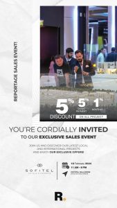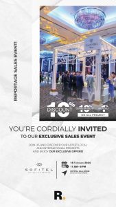 تنظم ريبورتاج العقارية، الشركة الرائدة في مجال التطوير العقاري بالإمارات، يوما خاصا للمبيعات، في فندق سوفيتيل أبوظبي الكورنيش، يوم الأحد المقبل، الموافق 18 فبراير الحالي.