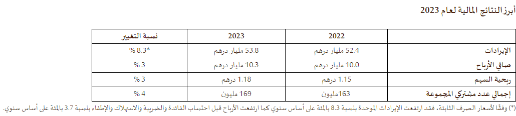 وعلى مستوى قاعدة المشتركين، سجلت ” إي آند الامارات” نموًا ملحوظًا في العام 2023، حيث وصل عدد المشتركين إلى أكثر من 14 مليون مشترك في دولة الإمارات، بزيادة قدرها 3 بالمئة عن العام السابق، ليبلغ إجمالي عدد مشتركي المجموعة 169 مليون، بزيادة قدرها 4 بالمئة عن العام 2022.