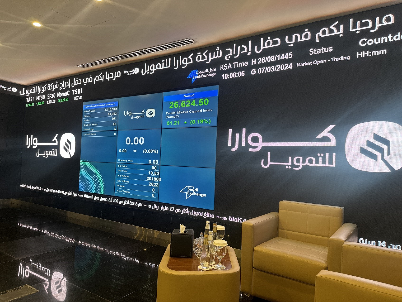 أعلنت اليوم “كوارا للتمويل”، الشركة السعودية الرائدة في تقديم خدمات التمويل المتوافقة مع أحكام الشريعة الإسلامية، إدراجها وبدء تداول أسهمها في نمو -السوق الموازية- ضمن “تداول”.