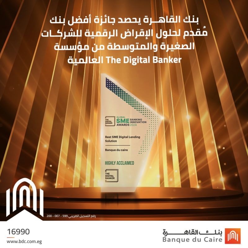 حصل بنك القاهرة على جائزة أفضل بنك مقدم لحلول الإقراض الرقمية للشركات الصغيرة والمتوسطة.