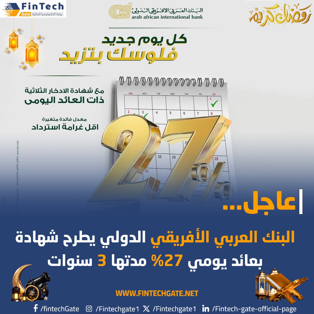 عاجل: البنك العربي الأفريقي الدولي يطرح شهادة بعائد يومي 27% مدتها 3 سنوات