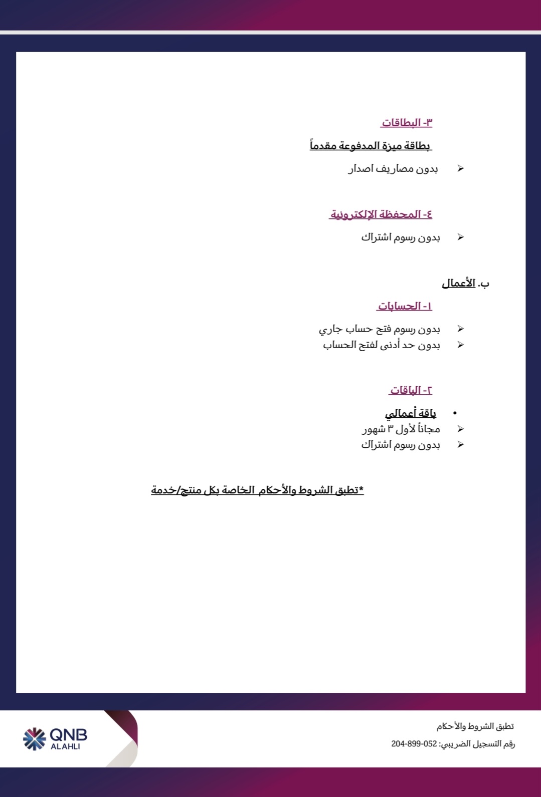 أضاف أنه يتم فتح الحسابات الجاري والجاري ذو العائد والتوفير بدون رسوم فتح حساب وبدون حد أدنى لفتح الحساب.