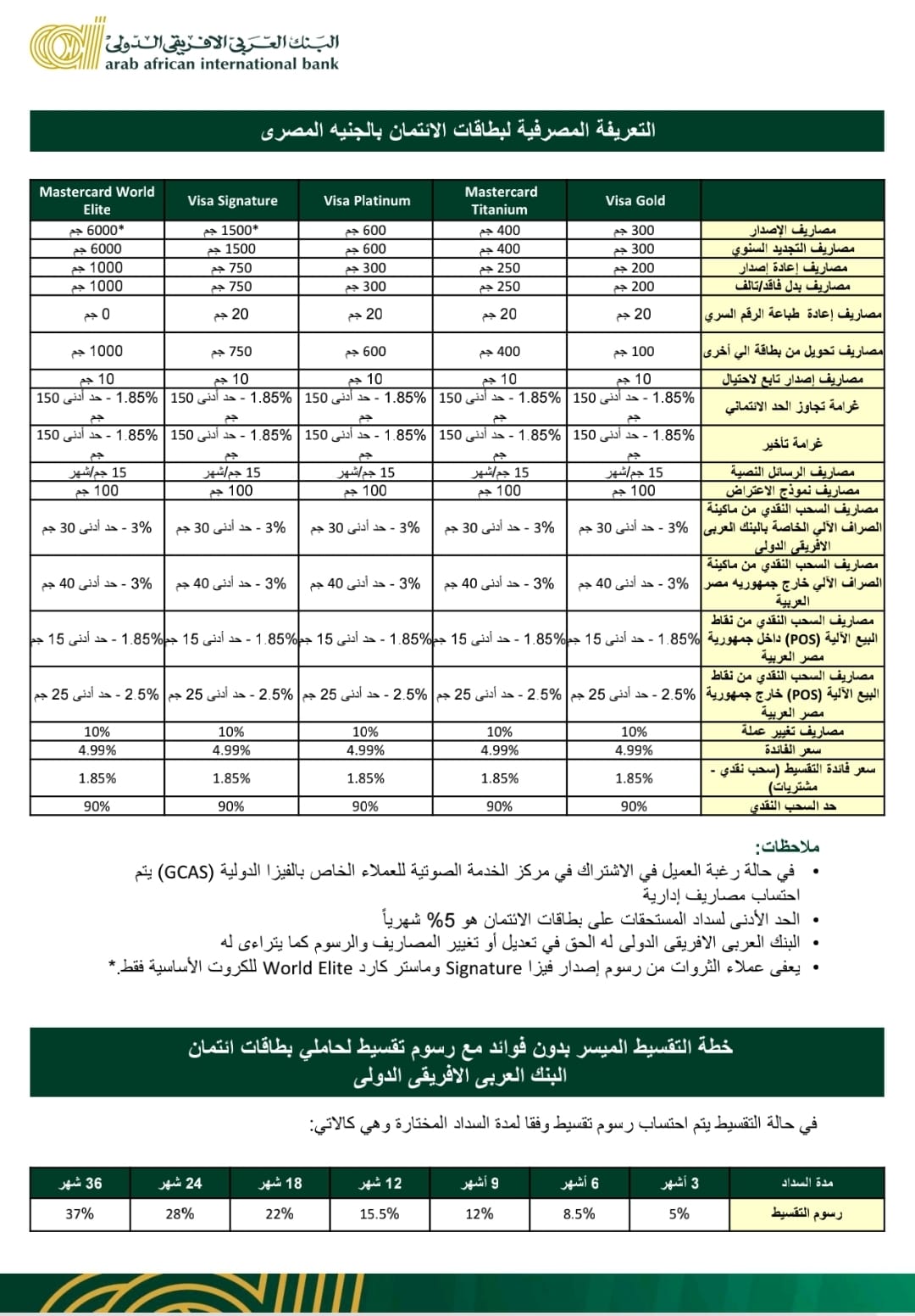 أعلن البنك العربي الإفريقي الدولي عن تعديل التعريفية الخاصة بالبطاقات الإئتمانية.