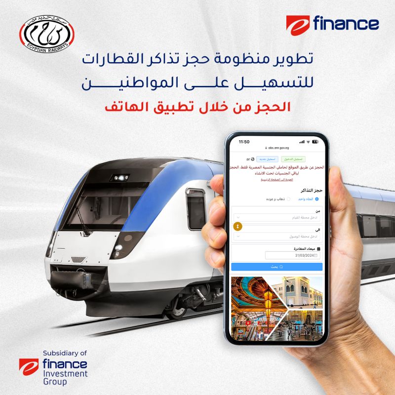 أعلنت شركة «إي فاينانس» الرائدة في مجال حلول الدفع الإلكتروني عن تعاونها مع الهيئة القومية لسكك حديد مصر لتطوير منظومة حجز تذاكر القطارات عبر الهاتف المحمول والموقع الإلكتروني.