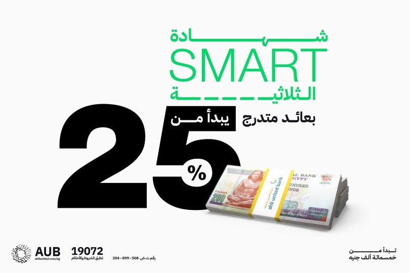 أطلق البنك الأهلي المتحد فرصة استثمارية استثنائية من خلال طرح شهادة SMART الثلاثية بعائد متدرج يُتيح لهم الاستفادة من عائدات مُجزية تصل إلى 25% على مدار 3 سنوات.