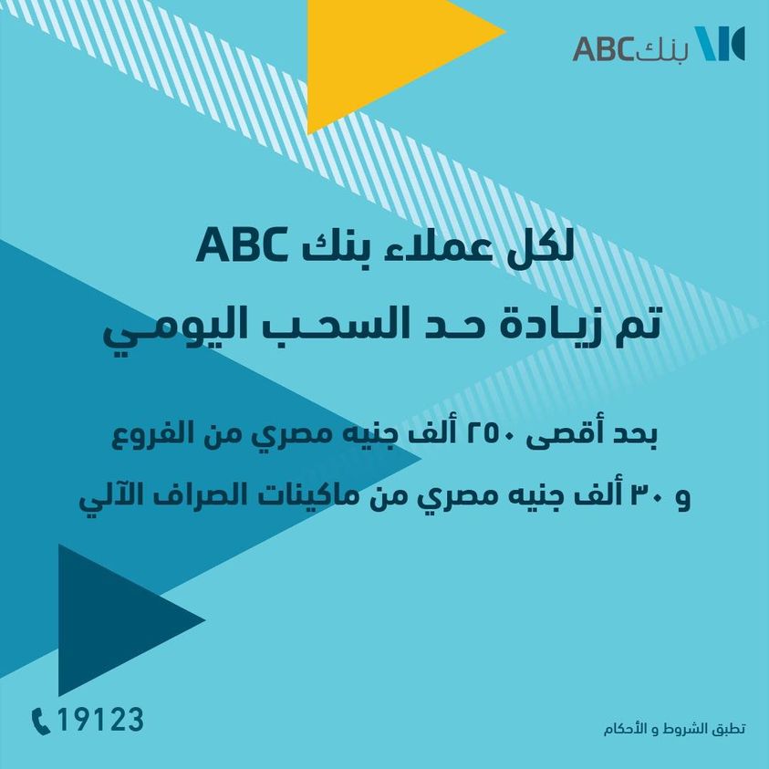 أعلن بنك المؤسسة العربية المصرفية ABC، أحد أبرز المؤسسات المالية الرائدة، عن زيادة حد السحب اليومي لعملائه وفقا لتعليمات البنك المركزي المصري.