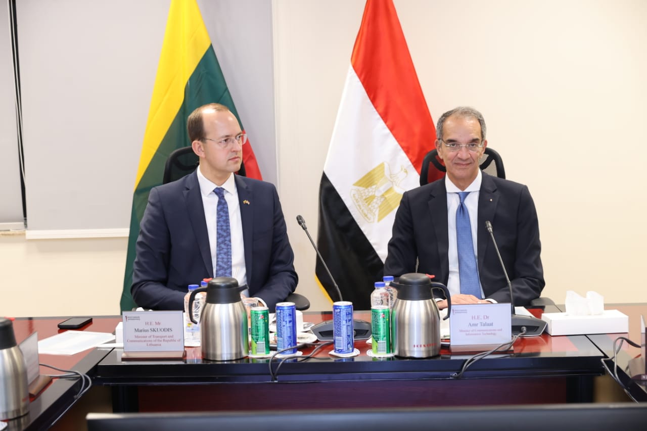 بحث وزير الاتصالات وتكنولوجيا المعلومات الدكتور عمرو طلعت مع وزير الاتصالات والنقل فى جمهورية ليتوانيا ماريوس سكوديس والوفد المرافق له تعزيز التعاون بين مصر وليتوانيا فى مجالات الاتصالات وتكنولوجيا المعلومات خاصة المتعلقة بالتحول الرقمى والبريد والتعهيد والأمن السيبرانى والذكاء الاصطناعي، بحضور آرتوراس جايليوناس سفير ليتوانيا فى مصر.