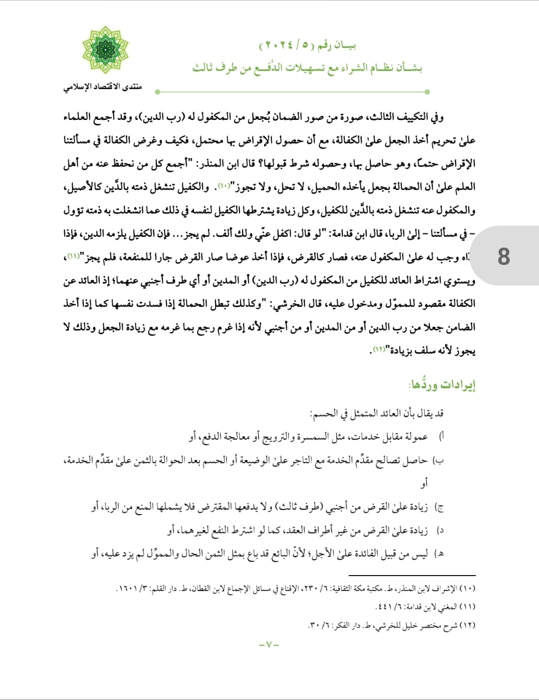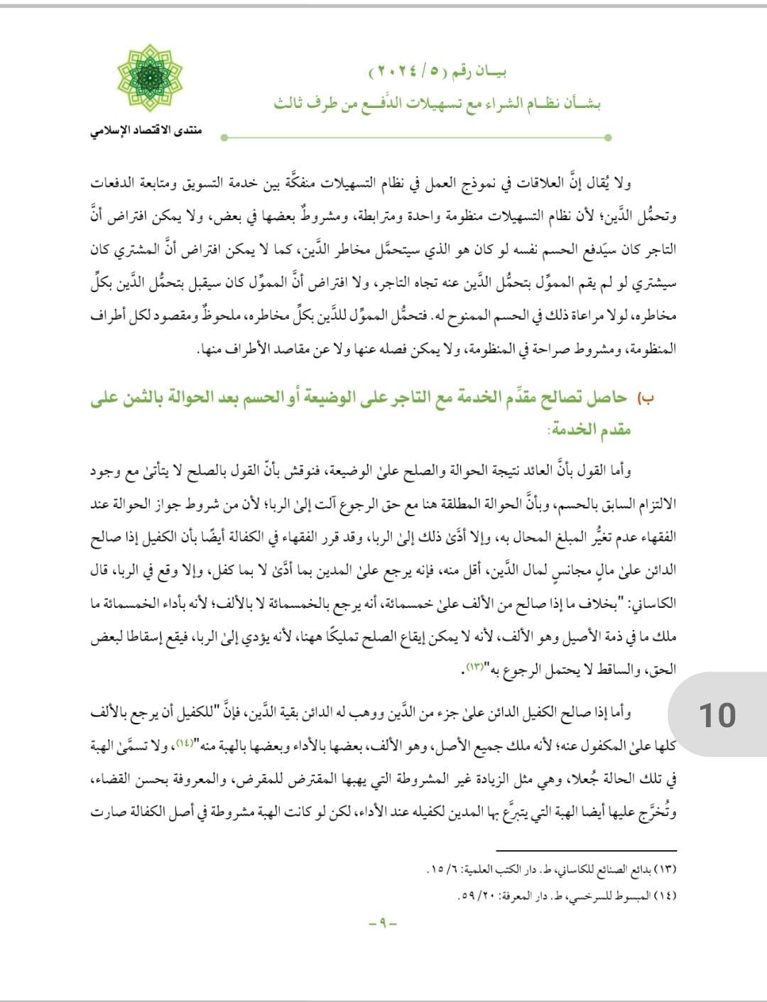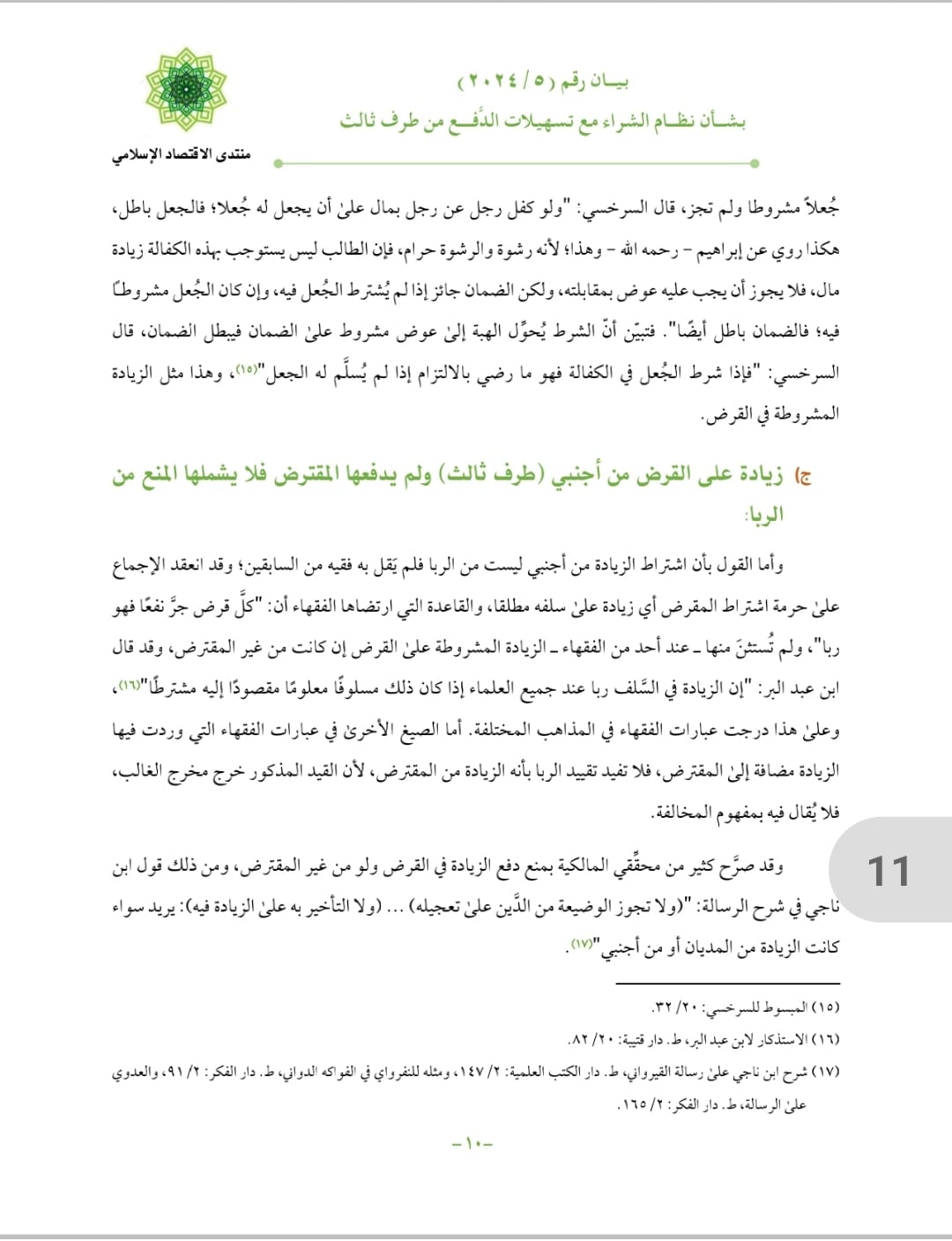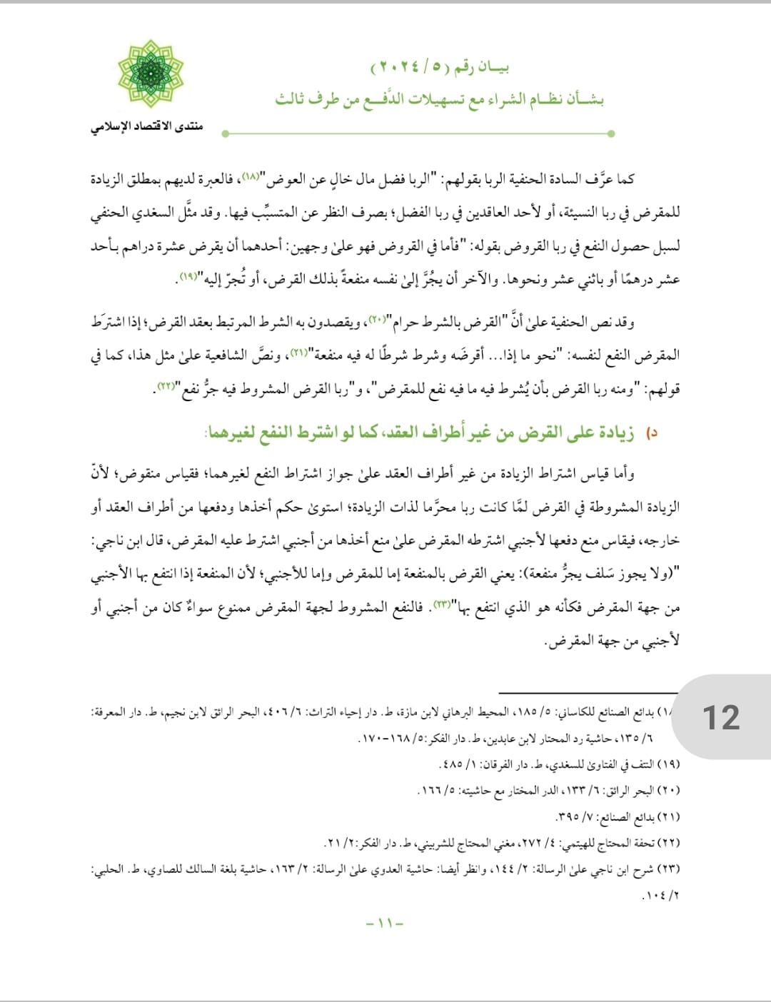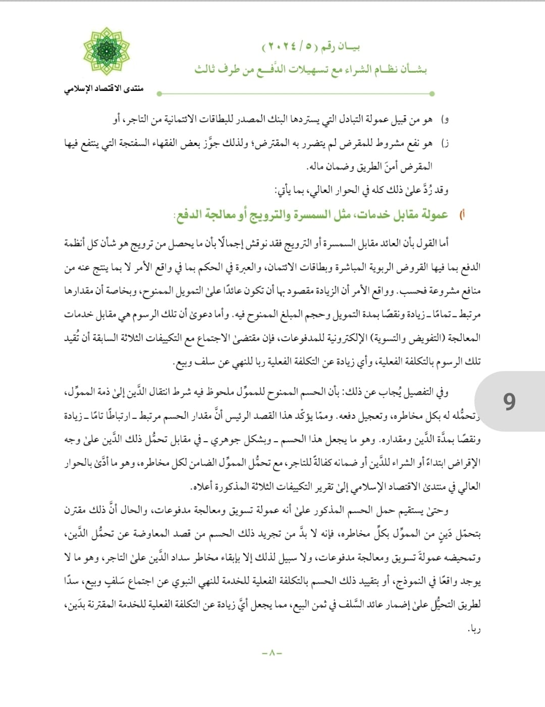 وقد أصدر المنتدى بيانا مفصلا من 16 صفحة، حصلت بوابة التكنولوجيا المالية «فنتيك جيت FinTech Gate» على نسخة منه تضمنت إصدار فتوى بمخالفة نظام الشراء مع تسهيلات الدفع من طرف ثالث والمعروفة بإسم إشتر الآن وإدفع لاحقا Buy NoW Pay Later BNLP، بنظامها الحالي للشريعة الإسلامية.