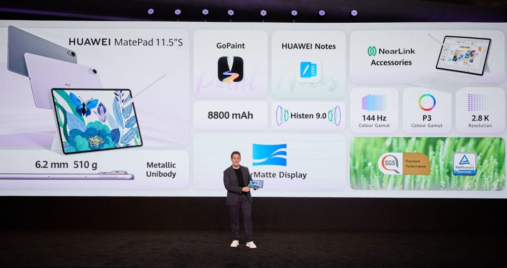 يعمل MatePad 11.5″S بشكل مثالي مع HUAWEI M-Pencil (الجيل الثالث) ولوحة المفاتيح المغناطيسية الذكية من هواوي، وكلاهما يتميز بتقنية NearLink.