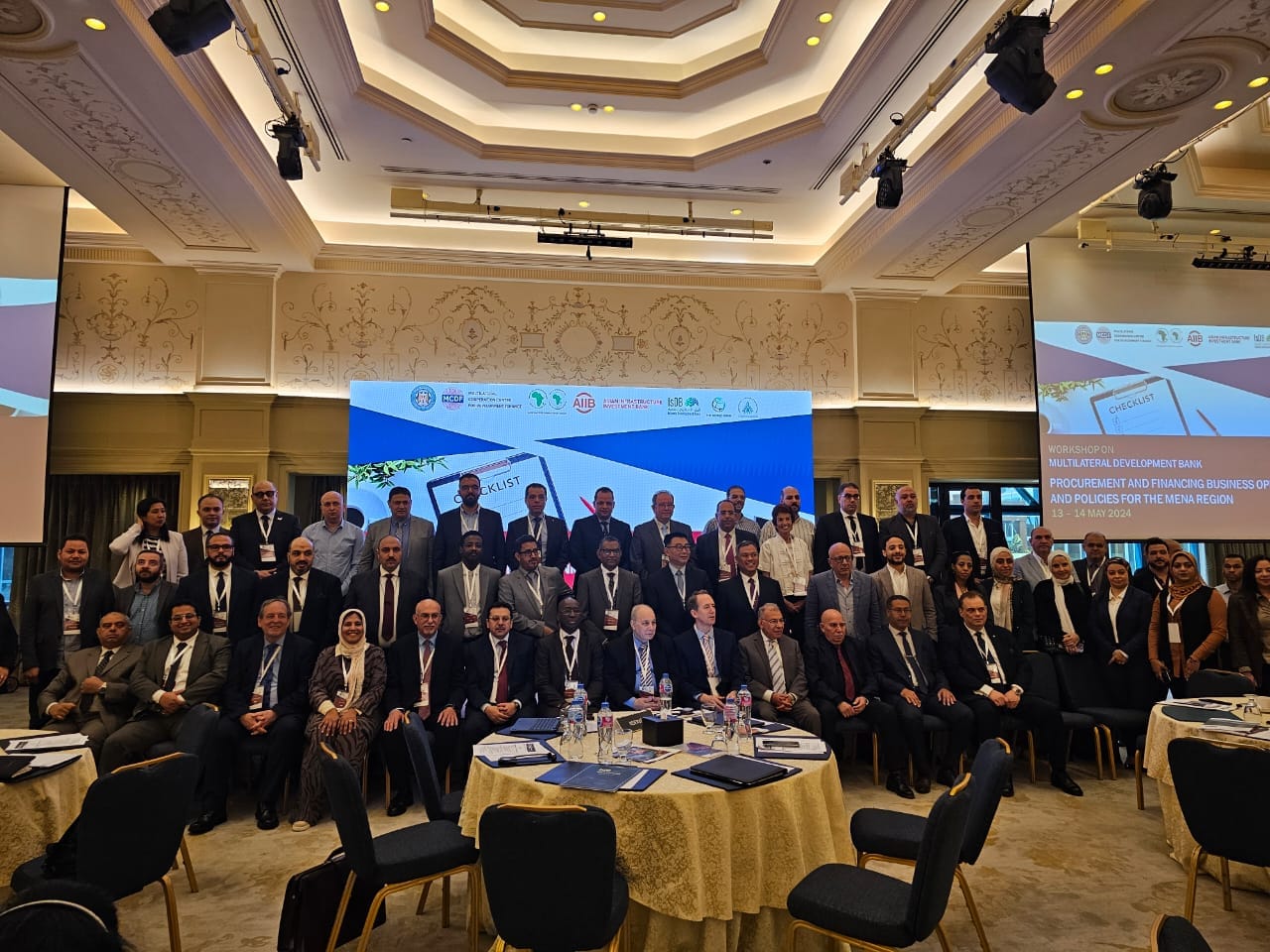 وعقدت وزراة المالية بالتعاون مع مركز التعاون متعدد الأطراف لتمويل التنمية التابع للبنك الآسيوي للاستثمار في البنية التحتية، واتحاد المقاولين المصري، ورشة عمل، على مدار يومين بالقاهرة، بحضور أكثر من 120 من شركات المقاولات، أعضاء اتحاد المقاولين، وممثلى بنوك التنمية الدولية مثل: «البنك الآسيوى للاستثمار فى البنية التحتية AIIB، والبنك الأفريقى للتنمية AFDB، والبنك الدولى WB، ومؤسسة التمويل الدولية IFC والبنك الإسلامى للتنمية ISDB، والبنك الأوروبى للاستثمار EIB، والبنك الأوروبى لإعادة الإعمار والتنمية EBRD، والوكالة الفرنسية من أجل التنمية AFD» وذلك بعنوان: «فرص التمويل وسياسات الأعمال في منطقة الشرق الأوسط وشمال أفريقيا»؛ لتأهيل المقاولين المصريين والشركات الخاصة للحصول على تمويلات من البنوك والجهات الدولية، من خلال تعريفهم بنظم تمويل المشروعات وآليات الطرح والتعاقد وغيرها.
