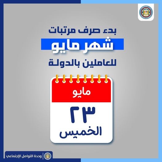 أعلنت وزارة المالية المصرية عن بدء صرف مرتبات شهر مايو 2024 للعاملين بالدولة بدءًا من الخميس الموافق 23 مايو 2024.