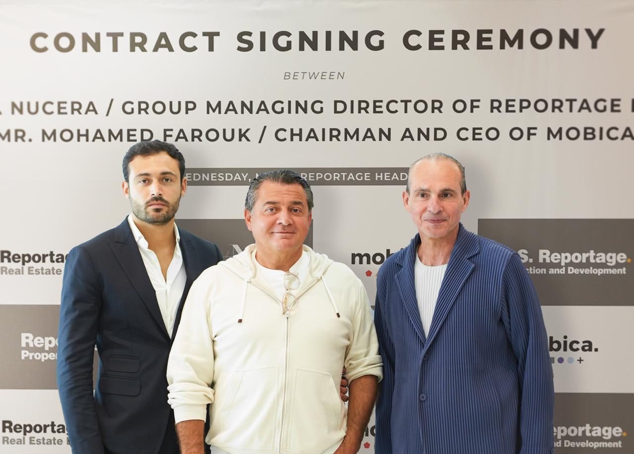 وقع الاتفاقية أندريا نوسيرا العضو المنتدب لشركة ريبورتاج العقارية، ومحمد فاروق رئيس مجلس الإدارة والرئيس التنفيذي لشركة موبيكا.