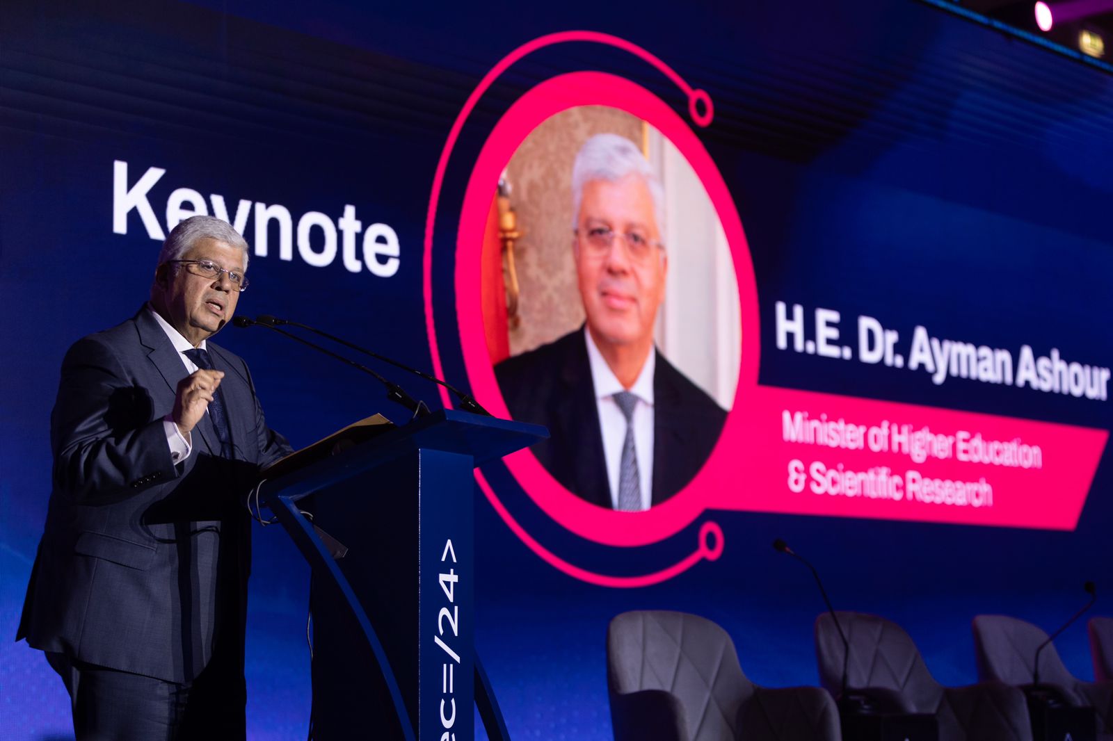 ولفت إلى أهمية التفاعل بين مؤسسات التعليم العالي لمواجهة التحديات حيث يوجد أكثر من 3.5 مليون طالب يمثلون القوى العاملة المستقبلية ونحو أكثر من 92 كلية ومعهد في مجال التكنولوجيا يجب الاستفادة منهم في البحث العلمي واكثر من 100 ألف طالب في كليات الحاسبات يمثلون قاعدة متميزة لمواهب مرتقبة تعمل في مجالات التكنولوجيا ومن المستهدف انشاء 16 جامعية أهلية جديد لإمداد سوق العمل بتخصصات الحاسب.