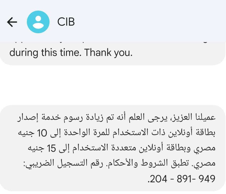 أعلن بنك cib اليوم عن زيادة رسوم إصدار بطاقات الأونلاين.