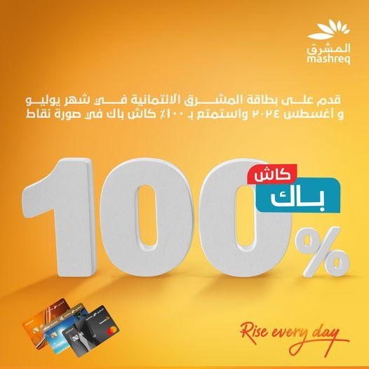 ويتيح العرض الحصول على 100% كاش باك في صورة نقاط على أول عملية شراء محلية عند التقديم على بطاقة المشرق الائتمانية خلال هذه الفترة.