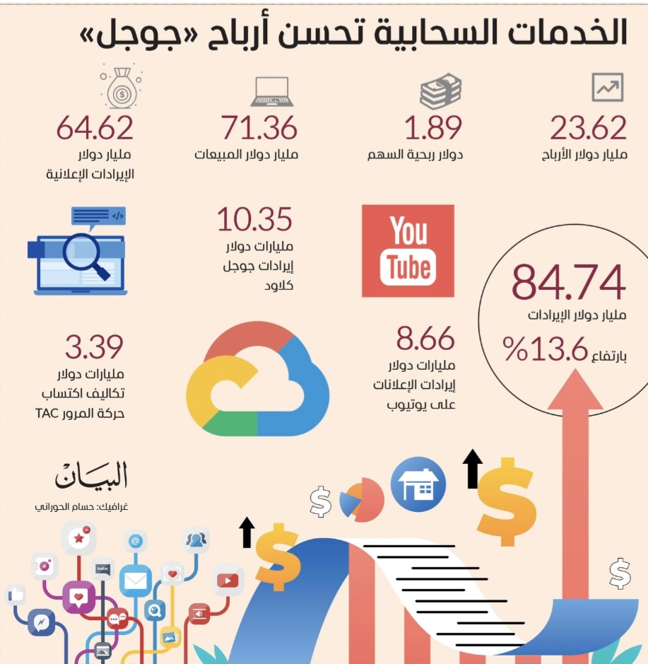ارتفعت إيرادات شركة Alphabet بنسبة 14 % على أساس سنوي، مدفوعة بمحركات البحث والخدمات السحابية، والتي تجاوزت 10 مليارات دولار في الإيرادات ربع السنوية ومليار دولار في الأرباح التشغيلية لأول مرة.