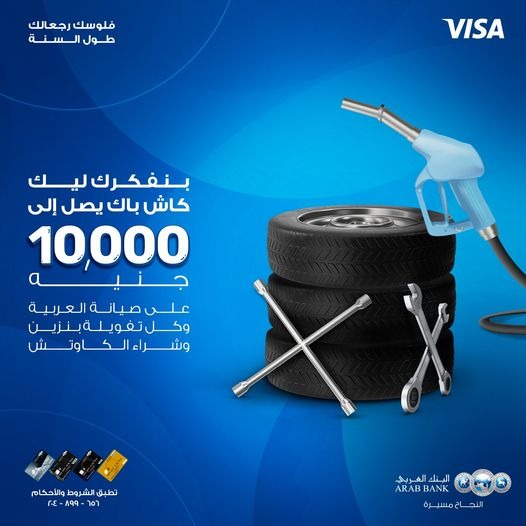 أعلن البنك العربي أن حملة كاش باك الصيف تتيح استرداد نقدي يصل إلى 10% على جميع مشترياتهم باستخدام بطاقات فيزا في مدفوعات البنزين أو مراكز صيانة العربيات أو الشراء أون لاين حتى 31 يوليو.