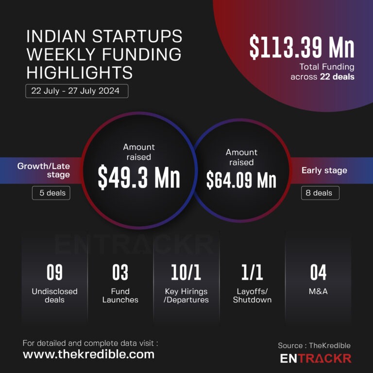 شهد الأسبوع الماضى نشاطًا ملحوظًا في قطاع الشركات الناشئة الهندية، حيث جمعت 22 شركة ناشئة ما يقرب من 113.39 مليون دولار ، وشملت هذه الصفقات 5 صفقات لمرحلة النمو و8 صفقات لمرحلة مبكرة، بينما أبقت 9 شركات ناشئة في مرحلة مبكرة تفاصيل الصفقة غير معلنة.