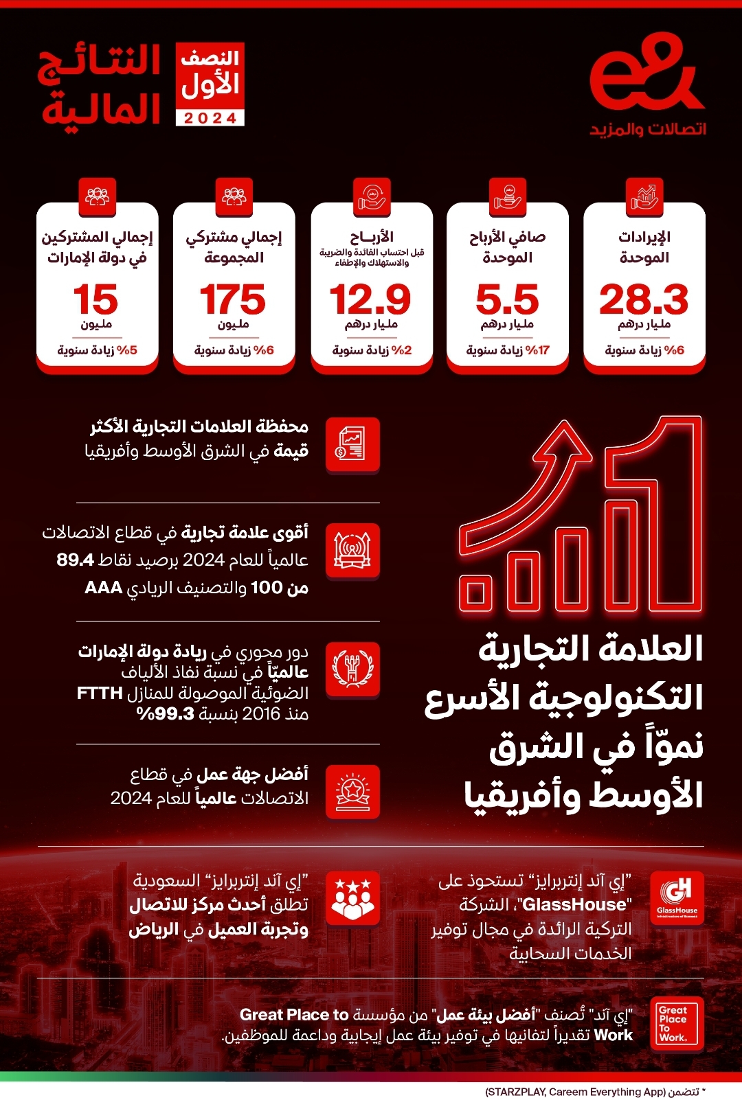 وأضاف الزعابي: «نحن فخورون بالتقدم الذي أحرزناه في النصف الأول من عام 2024، والذي عززته عمليات الاستحواذ الأخيرة، والشراكات، والتوسُّع الاستراتيجي في محفظة خدماتنا الرقمية. وتعزز هذه الجهود بشكل كبير مكانةَ “إي آند” الريادية في مجال التحول الرقمي؛ لما توفِّره من حلول متطورة لقاعدة متنوعة من العملاء».
