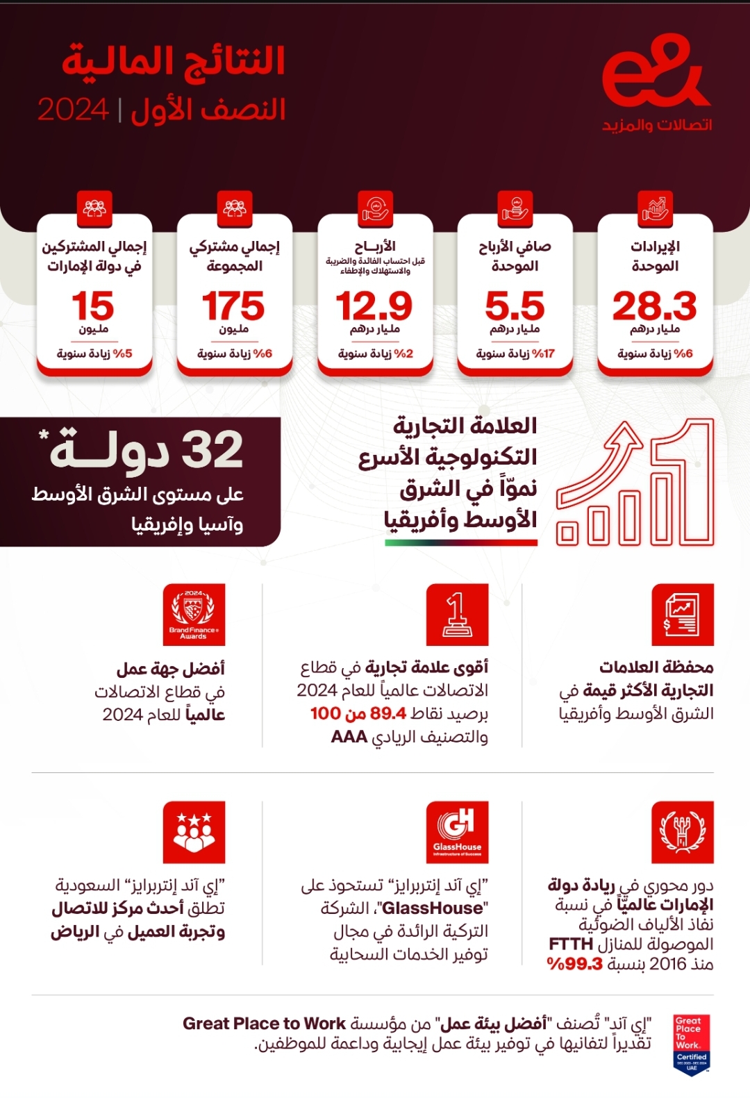 وأضاف الزعابي: «نحن فخورون بالتقدم الذي أحرزناه في النصف الأول من عام 2024، والذي عززته عمليات الاستحواذ الأخيرة، والشراكات، والتوسُّع الاستراتيجي في محفظة خدماتنا الرقمية. وتعزز هذه الجهود بشكل كبير مكانةَ “إي آند” الريادية في مجال التحول الرقمي؛ لما توفِّره من حلول متطورة لقاعدة متنوعة من العملاء».