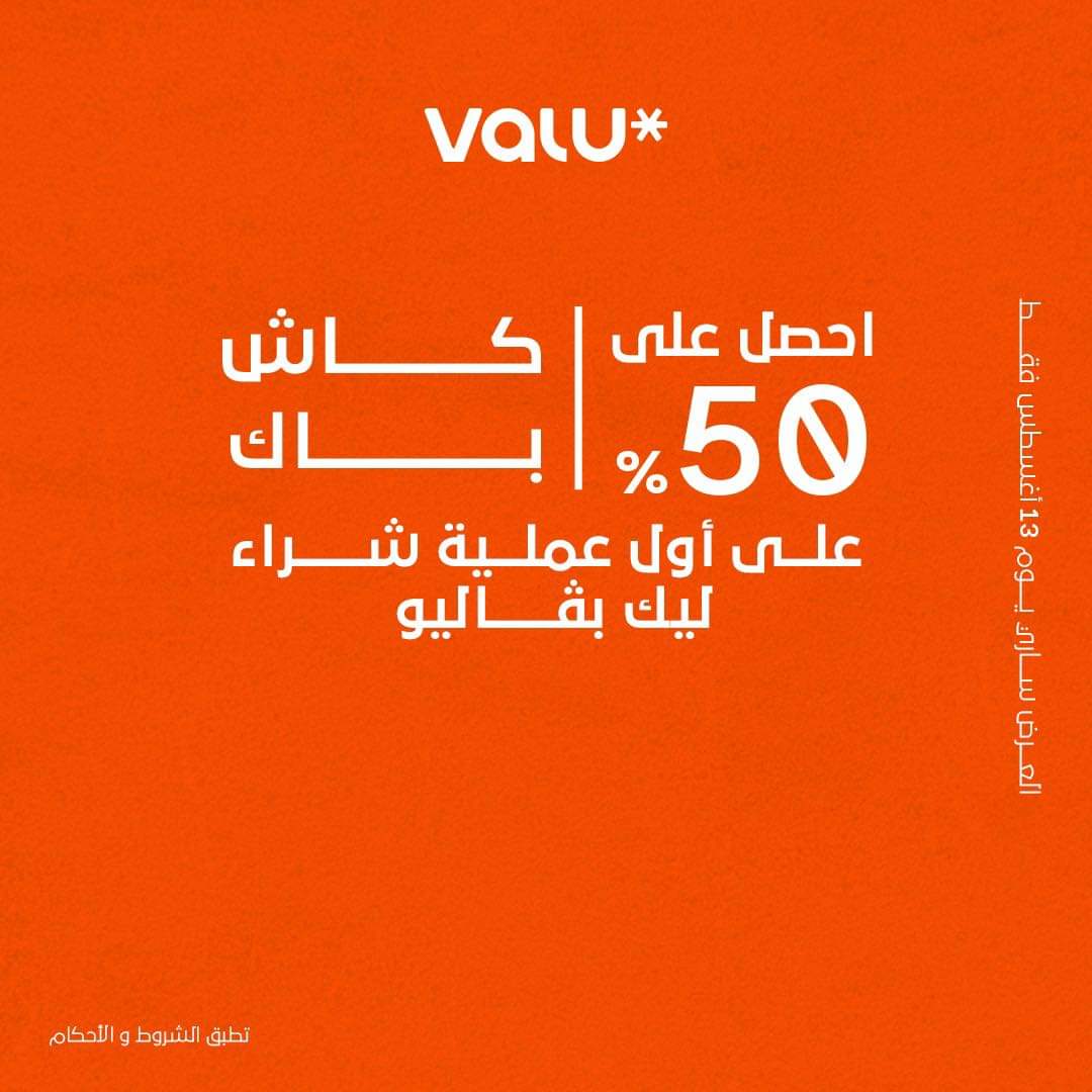 وأضاف الحق العرض وفعل حساب ڤاليو الآن واحصل على 50% كاش باك على أول عملية شراء.
