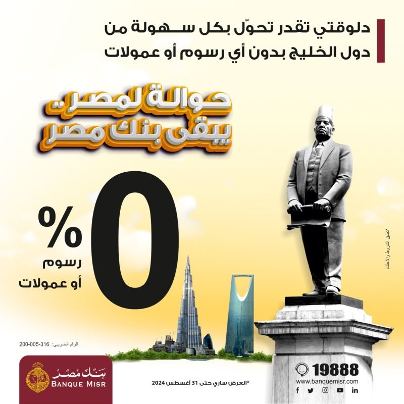 أعلن بنك مصر عن مبادرة جديدة تهدف إلى تسهيل عملية تحويل الأموال للمصريين المقيمين بالخليج، وذلك من خلال إعفاء جميع العملاء من الرسوم والعمولات على الحوالات الواردة من دول الخليج.