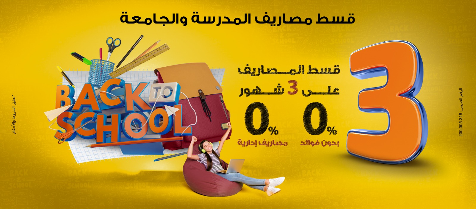 ويقدم البنك خدمة تقسيط مصاريف المدارس والجامعات على 3 أشهر بدون فوائد وبدون مصاريف إدارية.