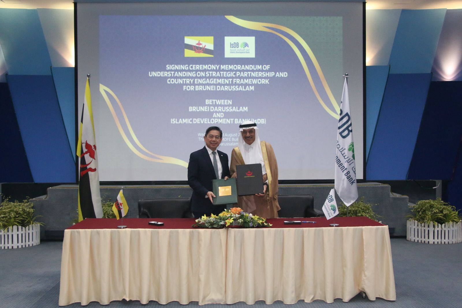 وقع البنك الإسلامي للتنمية ودولة بروناي مذكرة تفاهم لتعزيز الشراكة الاستراتيجية من خلال إطار الشراكة القطرية الذي يرسم مسار التعاون المستقبلي على المدى المتوسط للفترة من 2025-2030 في بندر سري بكاوان، عاصمة بروناي، بين رئيس البنك الإسلامي للتنمية الدكتور محمد الجاسر والدكتور حاج محمد أمين ليو بن عبد الله، الوزير بمكتب رئيس الوزراء ووزير المالية والاقتصاد الثاني.