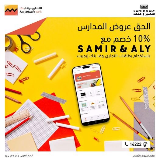 وأوضح البنك أنه يمكن لعملائه الاستمتاع بخصم 10% على جميع المشتريات من مستلزمات المدارس من مكتبات سمير وعلي.