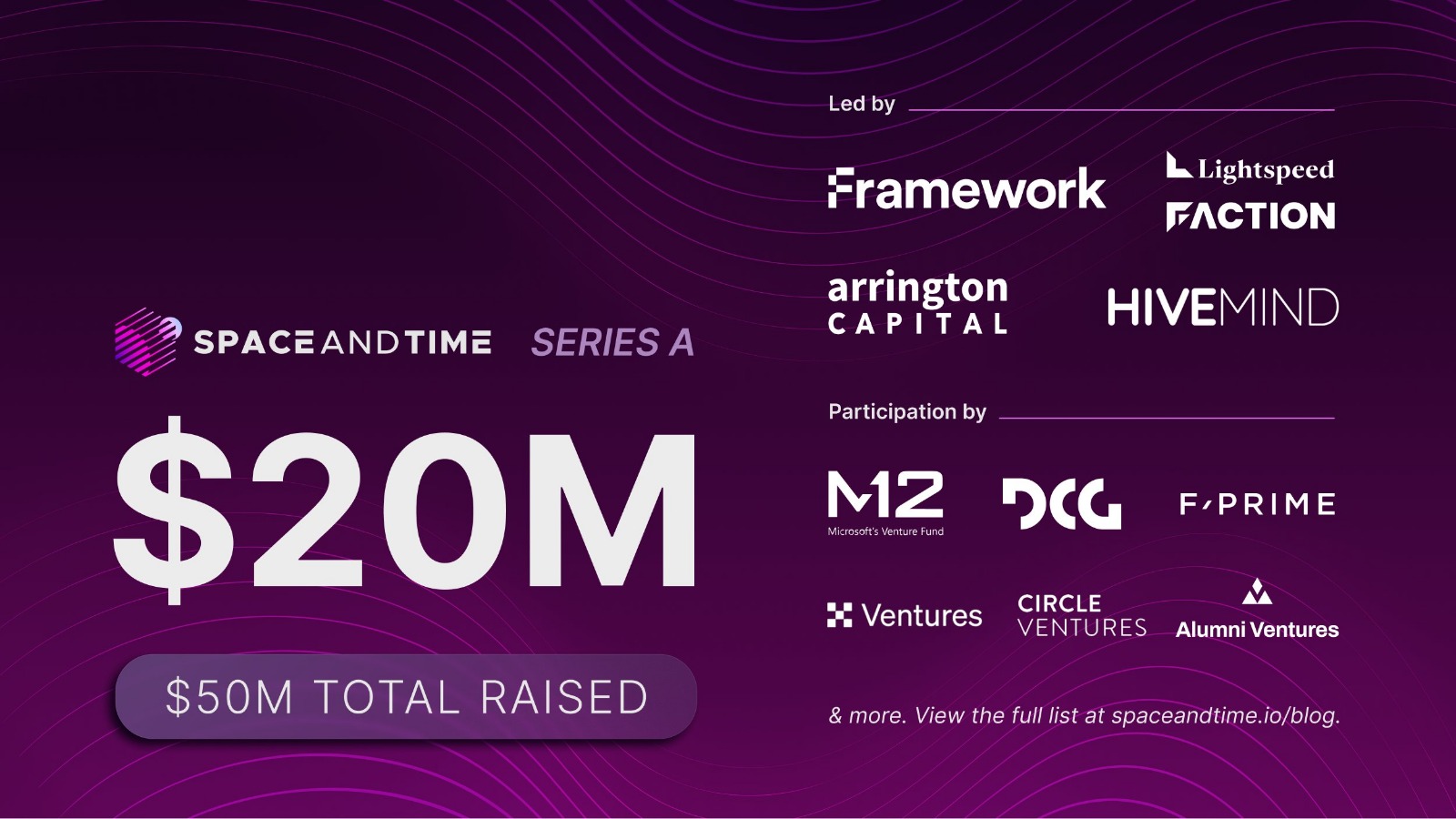 حصلت شركة Space and Time، وهي مطور بيانات blockchain مقرها Newport Beach في كاليفورنيا، على 20 مليون دولار في جولة تمويلية من نوع Series A.