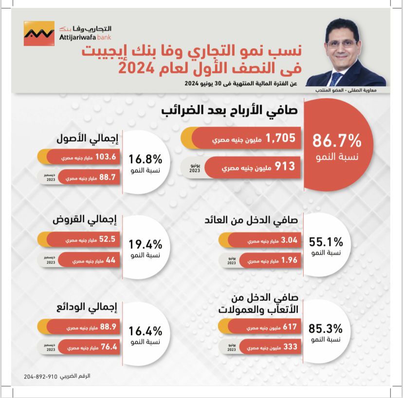 أعلن التجاري وفا بنك إيجيبت عن تحقيق نتائج مالية قوية خلال النصف الأول من عام 2024.