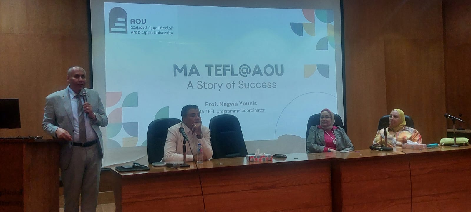 وأكدت الأستاذة الدكتورة نجوى يونس منسق برنامج ماجستير تعليم اللغة الإنجليزية قصة نجاح برنامج ماجستير تعليم اللغة الإنجليزية بالجامعة العربية المفتوحة الذي يستضيف هذا العام الأستاذ الدكتور رمضان محمد رمضان أستاذ التقويم التربوي ومساعد وزير التربية والتعليم لشؤون الامتحانات والأستاذ الدكتور عطا جبريل عميد برنامج الTESOL بالجامعة الأمريكية والأستاذة الدكتورة أميرة خاطر أستاذ الTEFL بجامعة عين شمس.