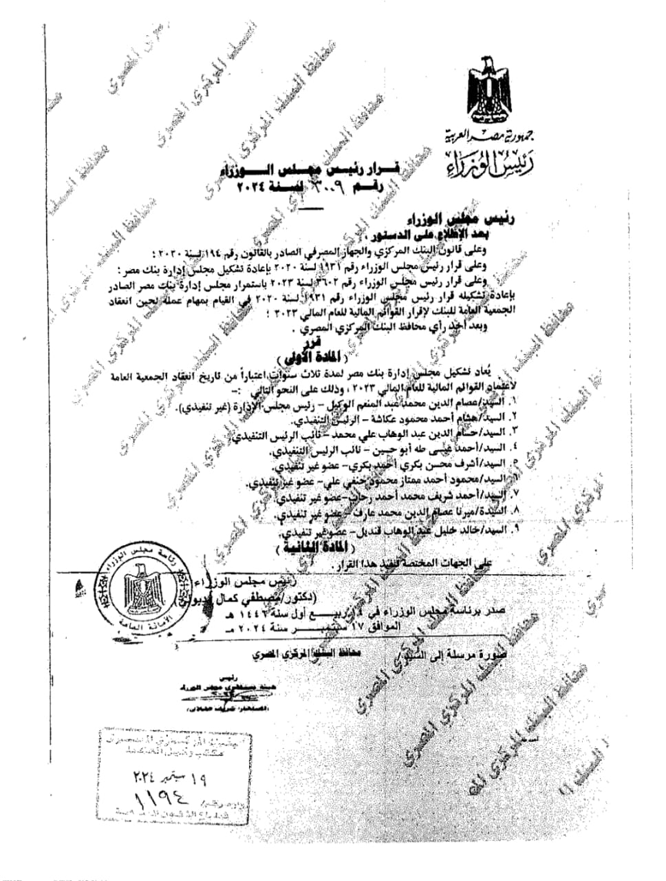 أصدر الدكتور مصطفى مدبولي رئيس مجلس الوزراء قرارا بإعادة تشكيل مجلس إدارة بنك مصر لمدة 3 سنوات قادمة تبدأ من اعتماد الجمعية العمومية للبنك للقوائم المالية للعام 2023.