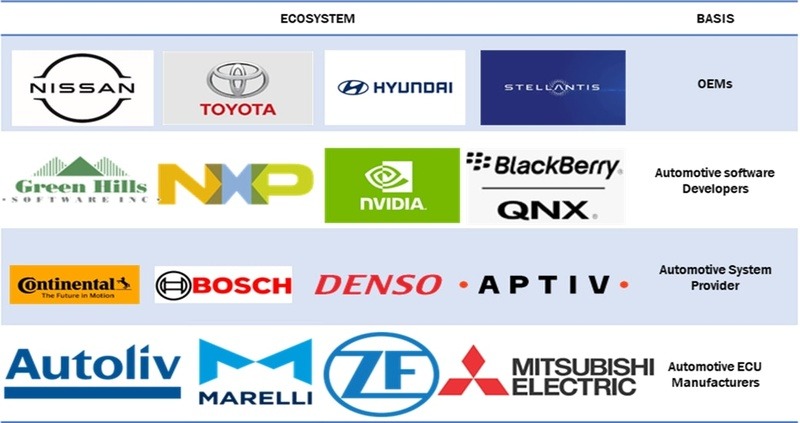 ووفقًا للدراسة فقد ضم تقائمة أبرز الجهات الفاعلة في سوق برمجيات السيارات:
