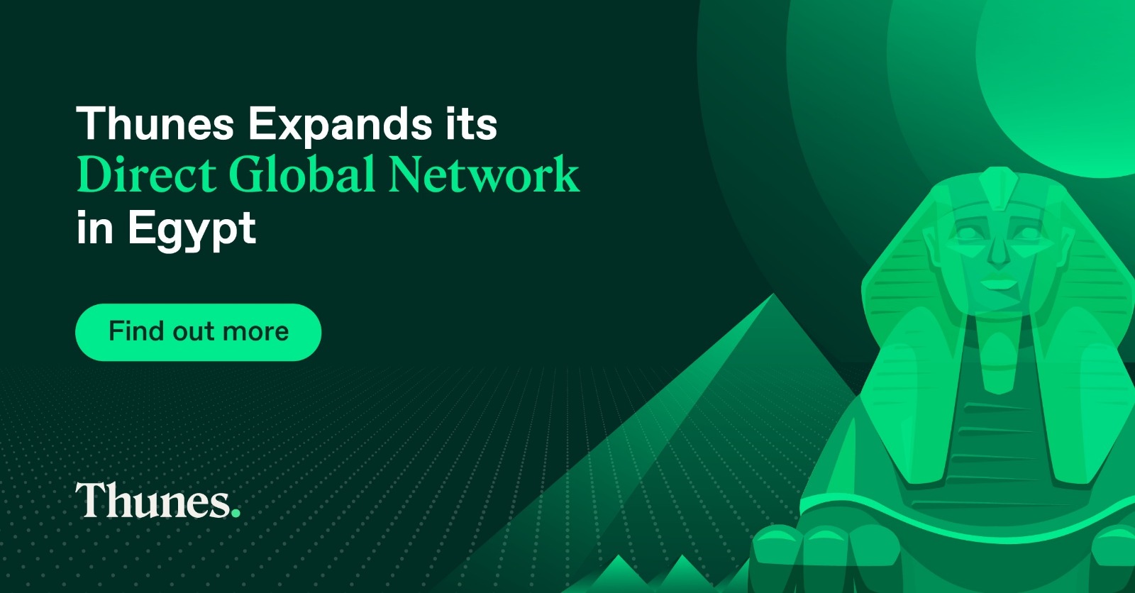 قامت Thunes، المزود العالمي الرائد للحلول الذكية لتحويل الأموال عبر الحدود ومقرها سنغافورة، بتوسيع عملياتها إلى مصر من خلال حلول Direct Global Network الذي سيدعم خدمات التحويلات المالية إلى مصر، إما إلى الحسابات المصرفية أو إلى محافظ الهاتف المحمول.