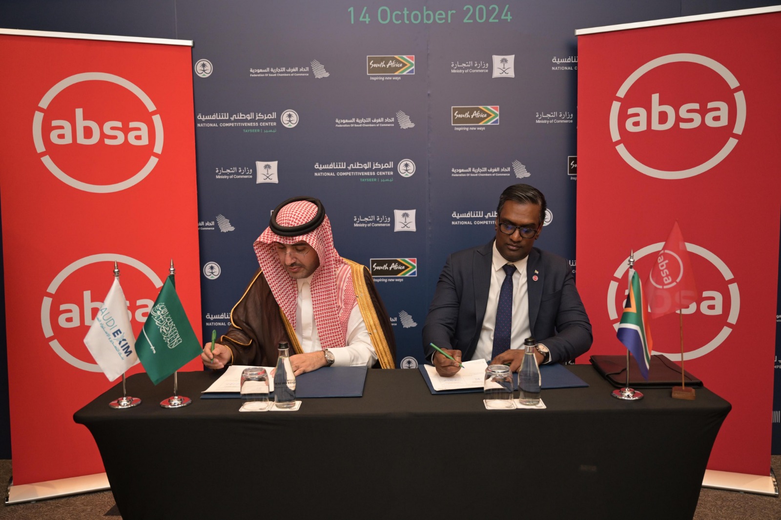 أبرم بنك التصدير والاستيراد السعودي مذكرتي تفاهم مع بنك Absaالمحدود وبنك Standard جنوب أفريقيا المحدود في إطار فعاليات منتدى الأعمال السعودي الجنوب أفريقي المنعقد في جوهانسبرج.