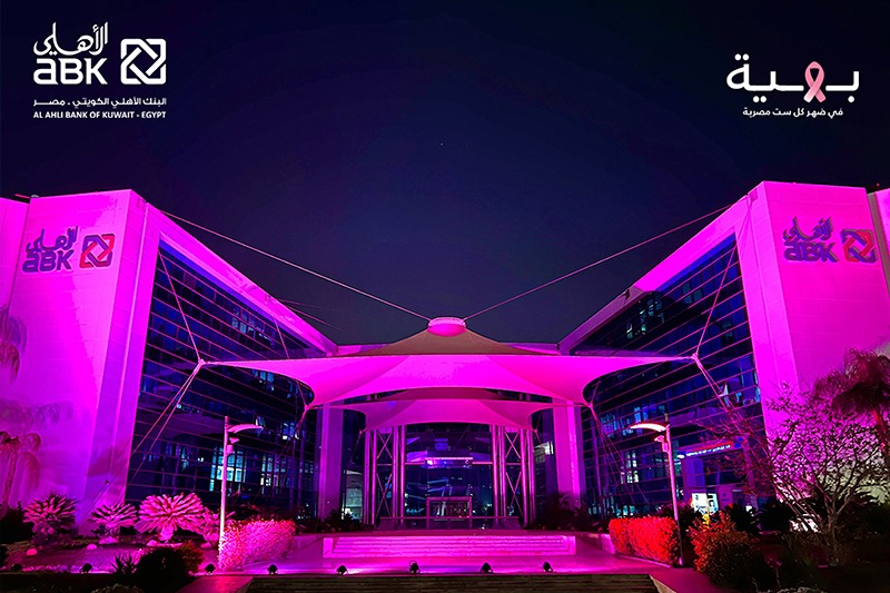 قام البنك الأهلي الكويتي – مصر بإضاءة مبنى المقر الرئيسي بالقرية الذكية باللون الوردي احتفالاً بالشهر العالمي للتوعية بمرض سرطان الثدي ولدعم بهية ومحارباتها.