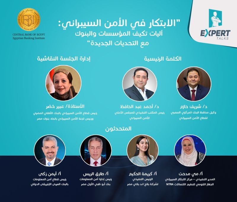 كما تشهد المحاضرة مشاركة مى مدحت، المدير التنفيذي لمركز الابتكار السيبراني بالجهاز القومي لتنظيم الاتصالات، وكريمة الحكيم، الرئيس التنفيذي لشركة بلاج آند بلاس مصر، وطارق الريس، رئيس إدارة أمن المعلومات ببنك أبو ظبى الأول مصر، بالإضافة إلى أيمن زكى رئيس قطاع أمن المعلومات بالبنك العربي الافريقي الدولى.