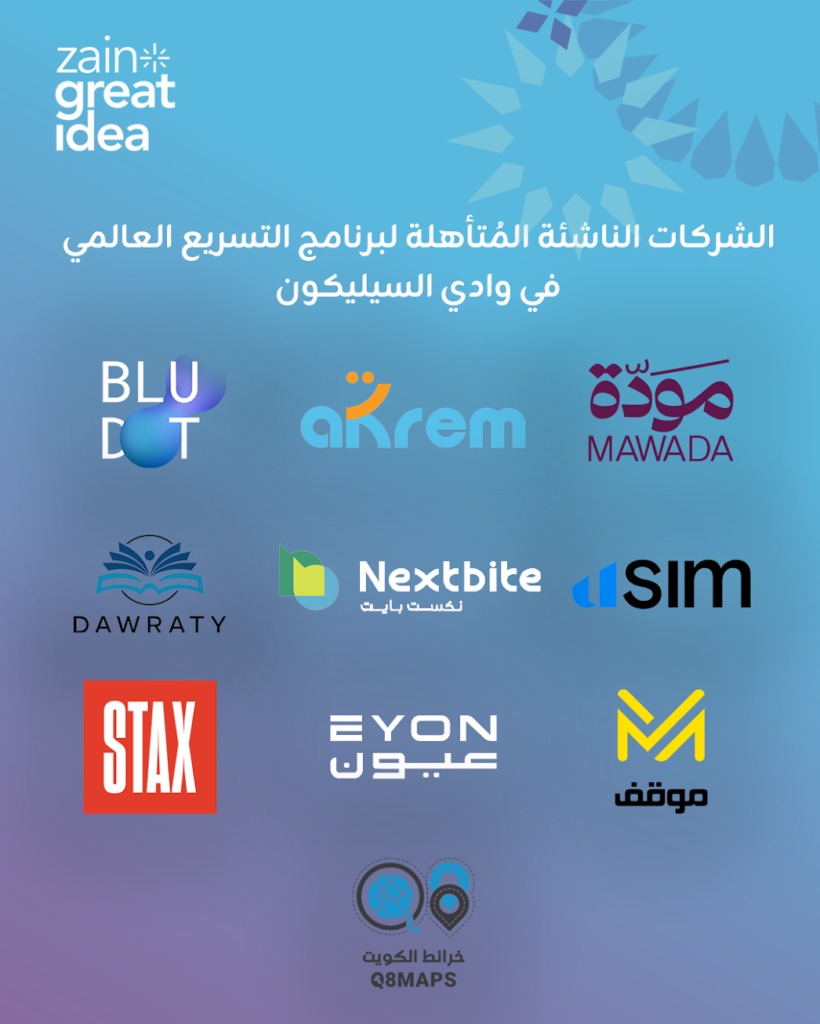 أعلنت zain عن أسماء 10 شركات كويتية تكنولوجية ناشئة تم اختيارها من قبل لجنة التحكيم لخوض المرحلة القادمة من برنامجها الرائد لتسريع الشركات التكنولوجية الناشئة Zain Great Idea، وهي مرحلة التسريع العالمي في مدينة بالو ألتو بولاية كاليفورنيا الأمريكية، وتحديداً في وادي السيليكون – العاصمة الروحية لريادة الأعمال حول العالم.
