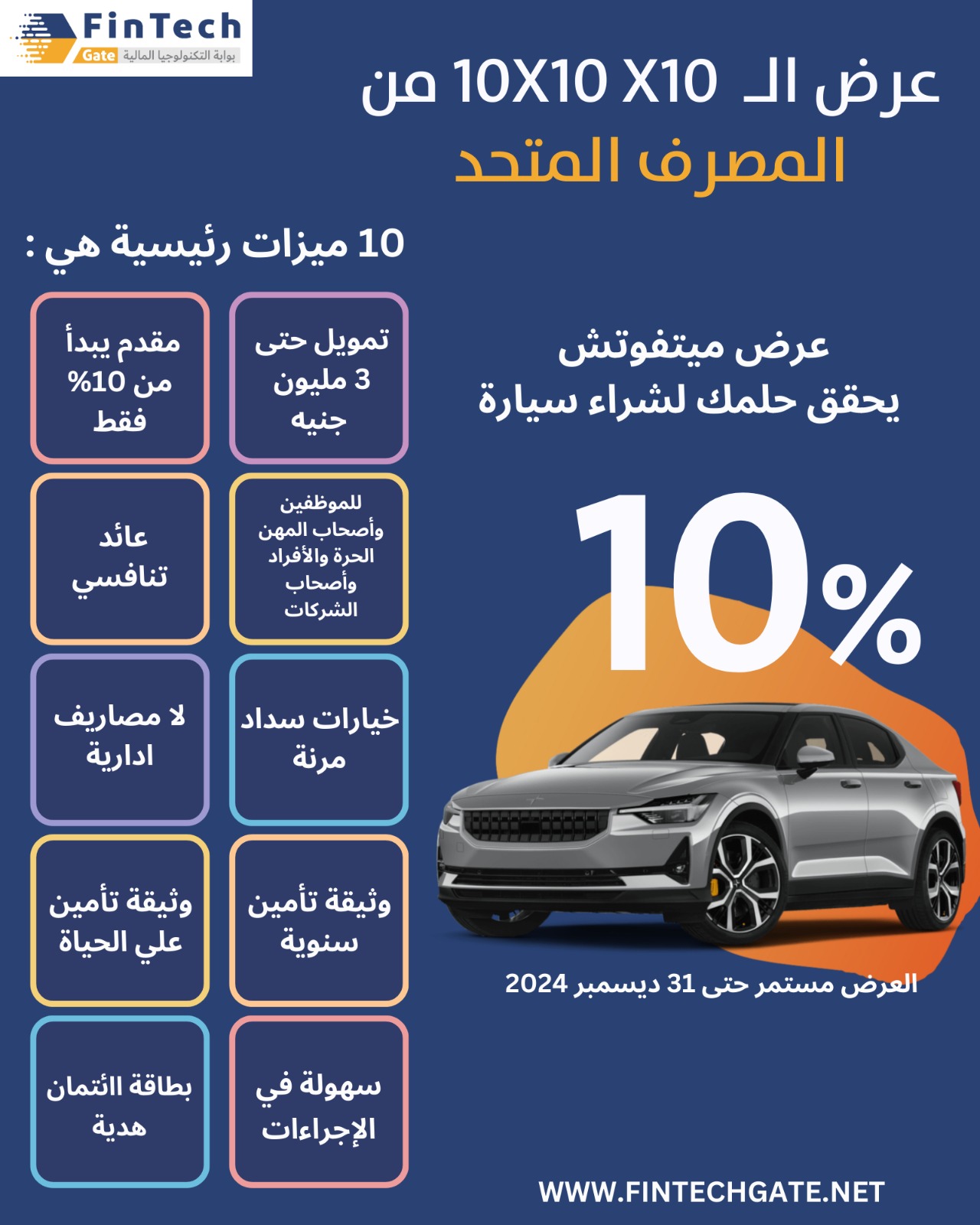 تحت شعار “عرض ميتفوتشي”, اعلن المصرف المتحد عن احدث منتج لتمويل السيارة. بهدف تلبية احتياجات العملاء وتسهيل حصولهم علي سيارة احلامهم.