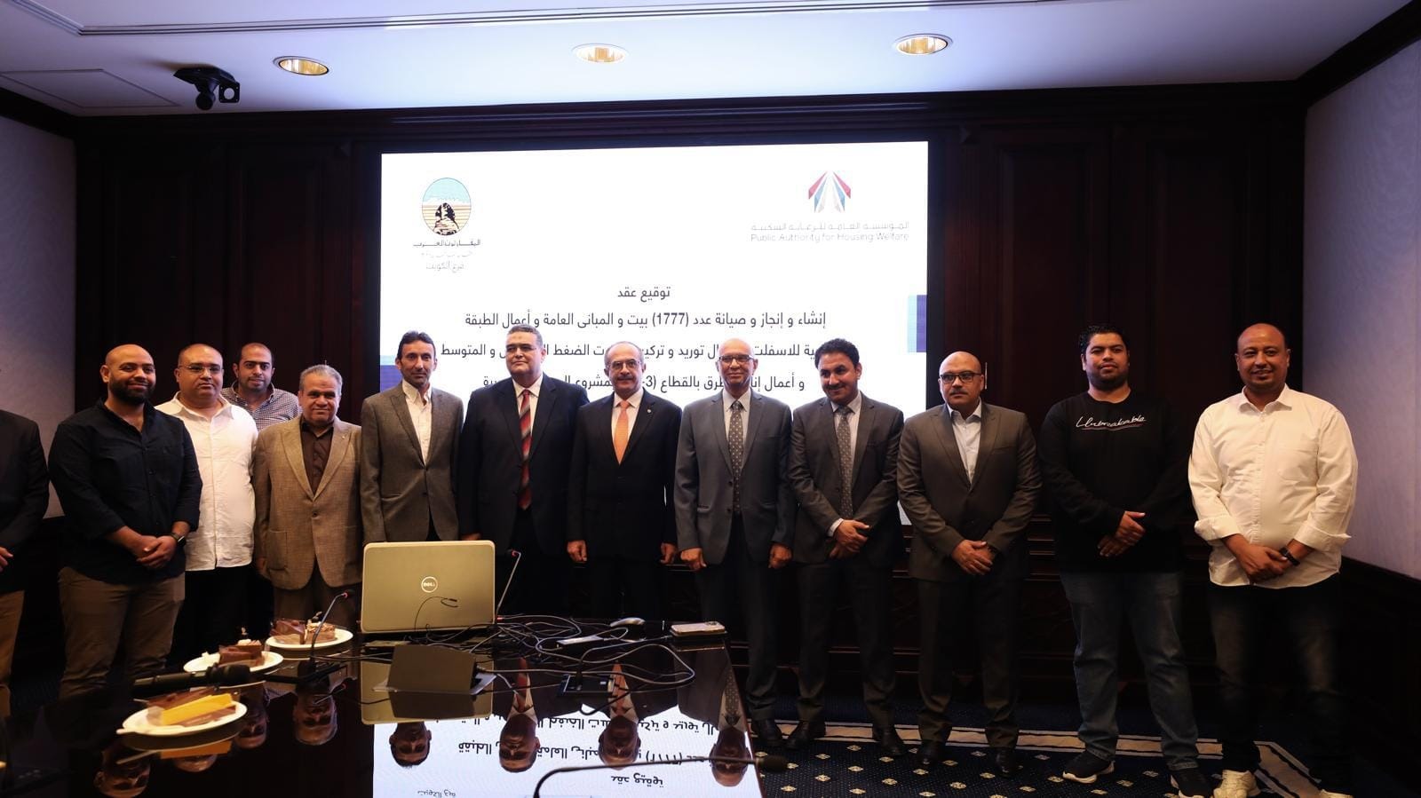 شهد توقيع العقد وزير الدولة لشؤون البلدية ووزير الدولة لشؤون الإسكان الكويتي السيد عبداللطيف المشاري ، وقام بتوقيع العقد مدير عام المؤسسة بالتكليف المهندس راشد العنزي والمهندس أحمد العصار، والذى أوضح أن المشروع يعد من مشروعات المساكن منخفضة التكاليف، وكشف أن العقد الذي قد فازت به الشركة يتضمن كذلك إنشاء مدارس ابتدائية ومتوسطة وثانوية، ومساجد رئيسية وسكن للإمام والمؤذن ومراكز إطفاء وإسعاف إضافة إلى أعمال الطبقة السطحية للأسفلت، وأعمال توريد وتركيب كابلات الضغط المنخفض والمتوسط، وأعمال إنارة الطرق بالقطاع B-3 ، ومن المتوقع الإنتهاء من الأعمال خلال 3 سنوات.