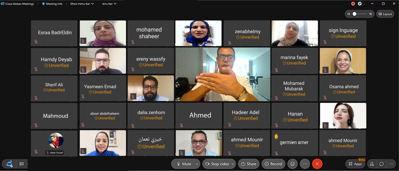 القي المحاضرة الدكتور سيد سامي – الدكتور المتخصص في لغة الاشارة باللغتين العربية والانجليزية. حيث ركزت الورشة على تقديم مفاهيم ومهارات أولية خاصة بلغة الإشارة، مثل كيفية التحية وإجراء محادثات بسيطة، كيفية التواصل مع العملاء من ذوي الهمم لتوصيل المعلومات البنكية والمعاملات المالية عبر القنوات الرقمية لهم.