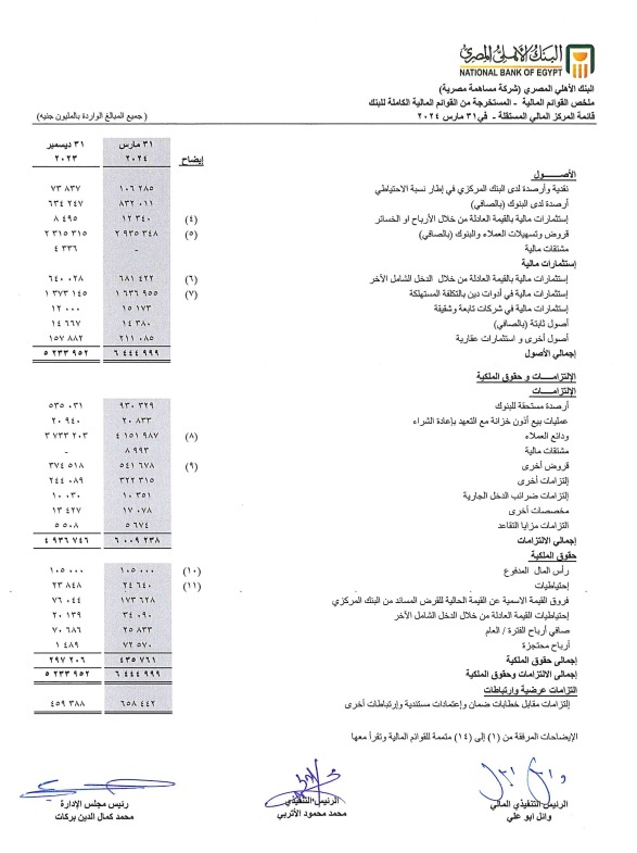 كما قفز إجمالي حقوق الملكية بنسبة 46.5% ليبلغ 435.761 مليار جنيه، مقارنة بـ 297.206 مليار جنيه بنهاية ديسمبر الماضي.