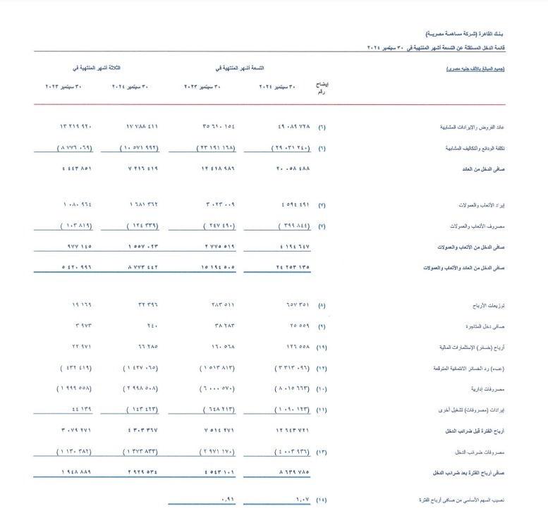 أعلن بنك القاهرة عن نتائج مالية قوية للفترة المالية المنتهية في سبتمبر 2024، حيث حقق معدلات نمو لافتة في كافة المؤشرات المالية الرئيسية، حيث قفز صافي الأرباح بعد الضرائب بنسبة 90.2%، ليسجل 8.639 مليار جنيه مقارنة بـ4.543 مليار جنيه في سبتمبر 2023.