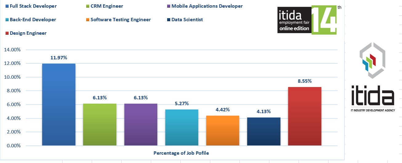 وأظهرت البيانات الإحصائية لملتقى التوظيف أن هناك طلبًا كبيرًا على مجموعة متنوعة من الوظائف في قطاع التكنولوجيا حيث تصدرت قائمة الوظائف الأكثر طلبًا وظيفة ” مطـور الويـب المتـكامـلFull Stack Developer” بنسبة 11.97% من إجمالي الوظائف المتاحة، تليها وظيفة “مهندس التصميم Design Engineer” بنسبة 8.55%.
