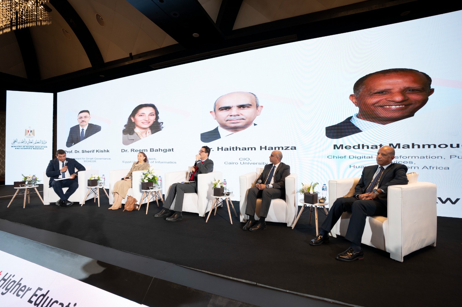 وفي هذا السياق، استعرض الأستاذ الدكتور شريف كشك، مساعد وزير التعليم العالي للحوكمة الذكية استراتيجية التحول الرقمي للتعليم العالي وذلك في إطار الاستراتيجية الوطنية للتعليم العالي والتي تضمنت عدة محاور منها تأهيل الكوادر لسوق العمل المحلية والدولية، وتدريب كل من أعضاء هيئة التدريس والطلاب لمواكبة أحدث التقنيات التكنولوجية والعمل نحو إنشاء جامعات ذكية ذات بنية تكنولوجية حديثه، وأشار سيادته إلى أهمية التعاون مع الشركات العالمية لتعزيز البحث العلمي والابتكار.
