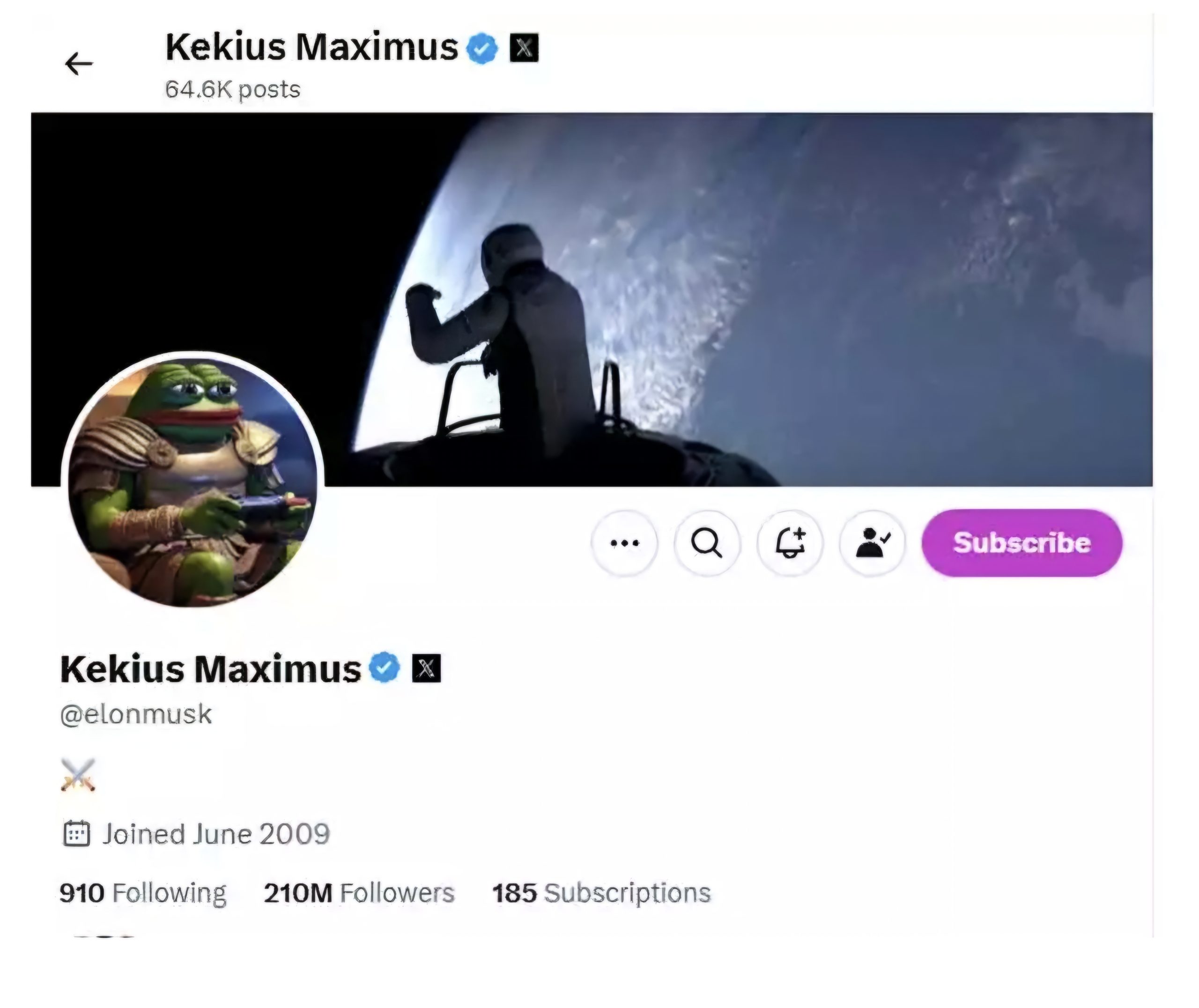 وتشير تكهنات رواد المنصة إلى أن الاسم الجديد لحساب ماسك، ربما يكون المقصود به شخصية البطل في فيلم “جلادييتور” للمثل راسل كرو.وأدت التغيرات التي أجراها ماسك على حسابه بـ”إكس”، إلى ارتفاع قيمة عملة مشفّرة تحمل ذات الاسم لنحو 900%.